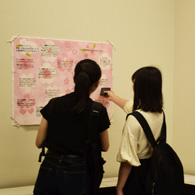 学生生活に関わるアイテムやメッセージを展示し、スタッフが説明を行いました。