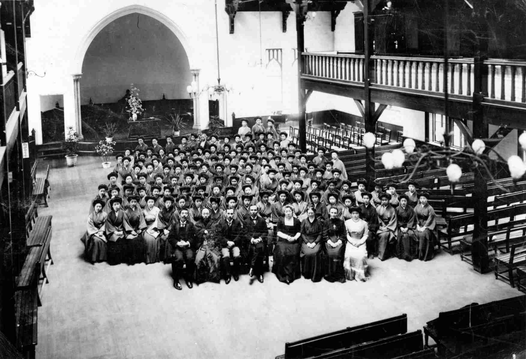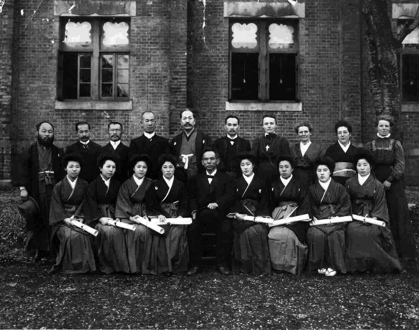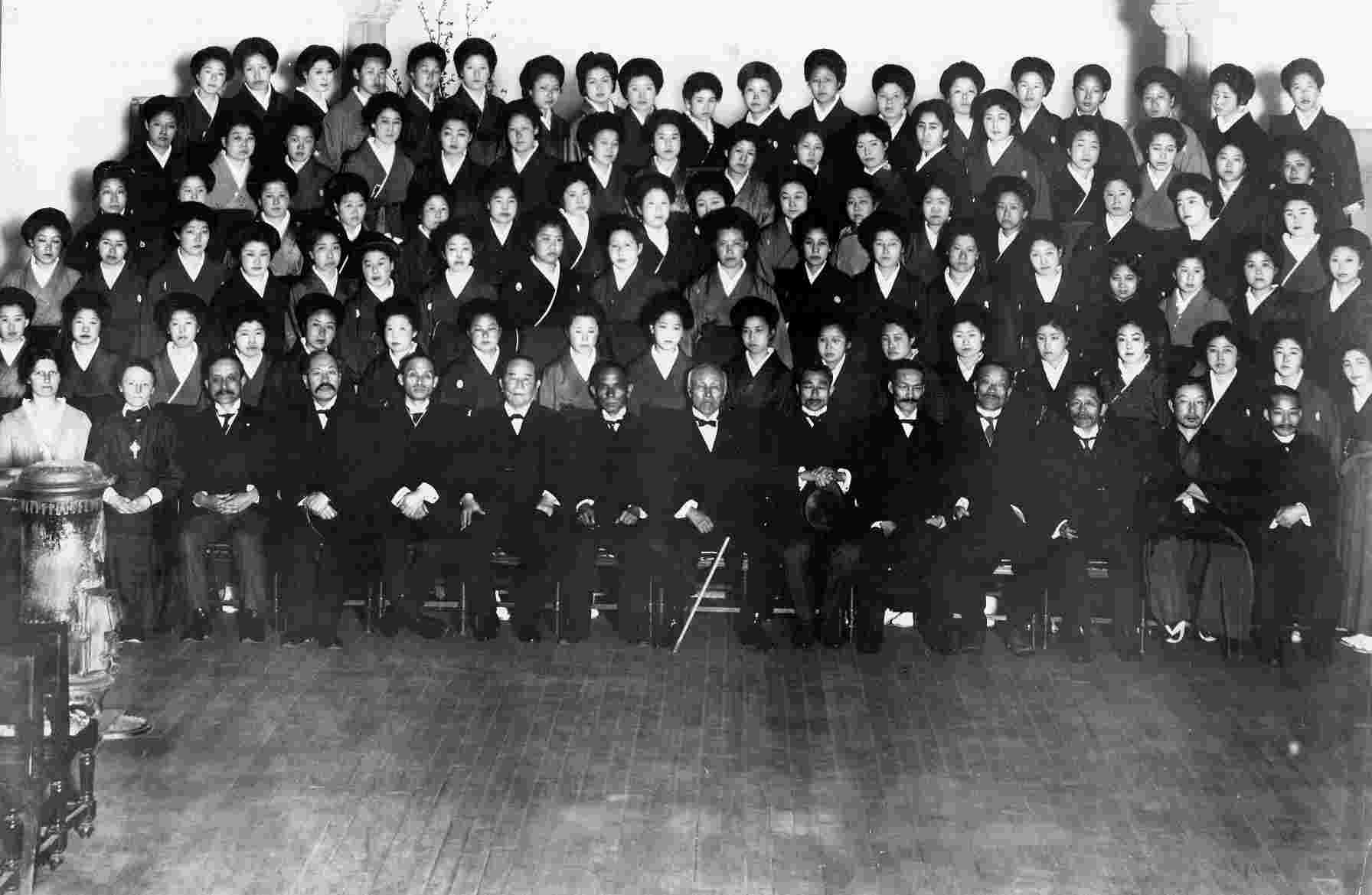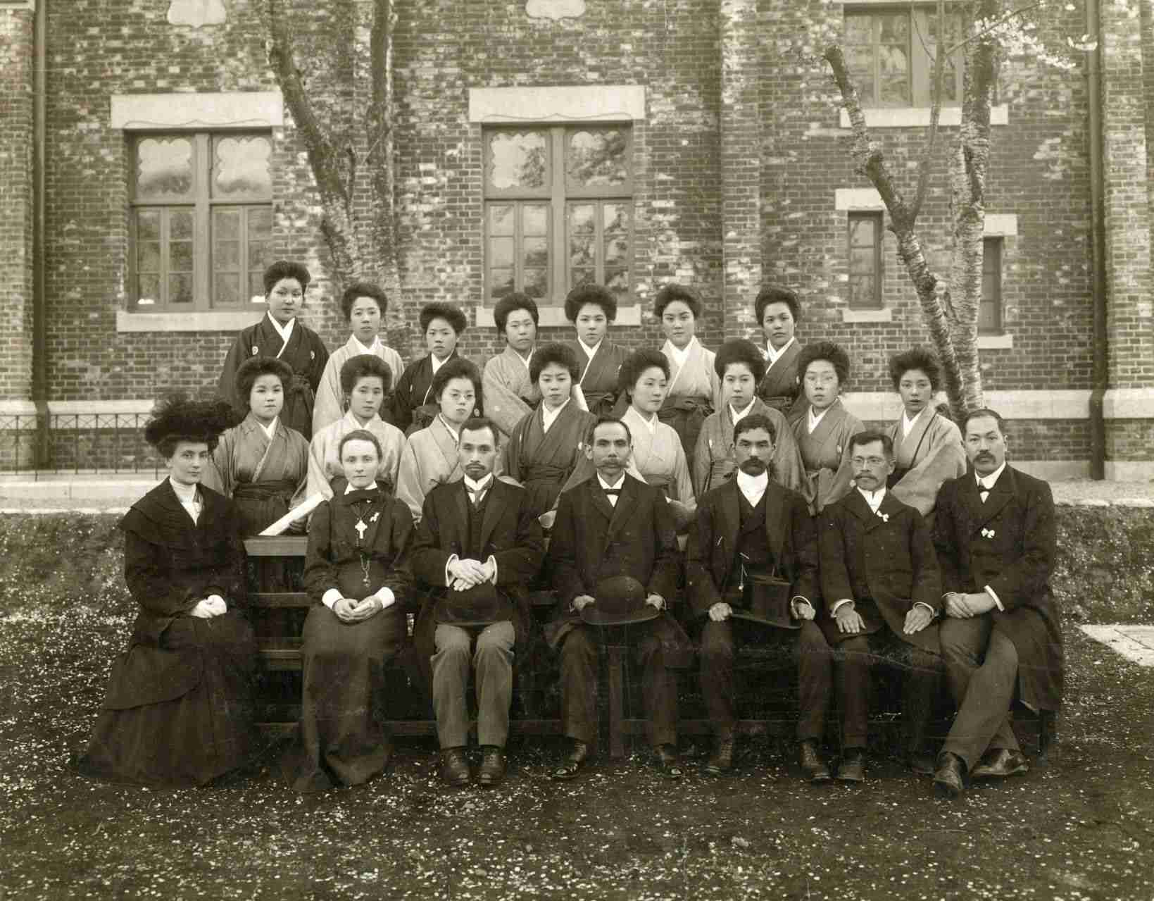 成瀬仁蔵、麻生正蔵、広岡浅子、三井寿天、外川残花、三宅龍子、藤原千代、弘田由己、小橋三四、大村嘉代
