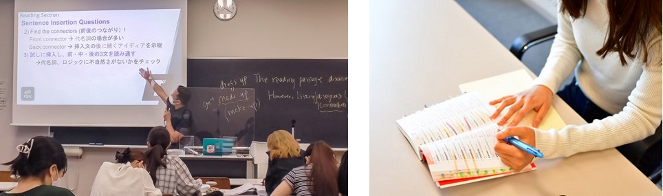 英語を母語としない人が英語圏の大学に留学するためには、英語能力証明試験として認められている試験で留学先の大学が求めるスコアを提出することが必要です。そのスコア取得対策のために、本学独自の「TOEFL iBT®️テスト準備コース」を設置しています。