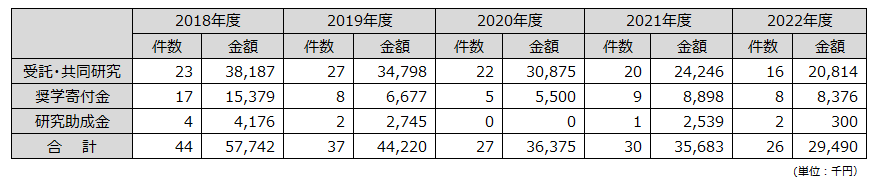受託研究費、共同研究費の10%が一般管理費となります。これらは主に光熱水費、事務処理費、人件費を支出した場合の消費税等に充てられます。
