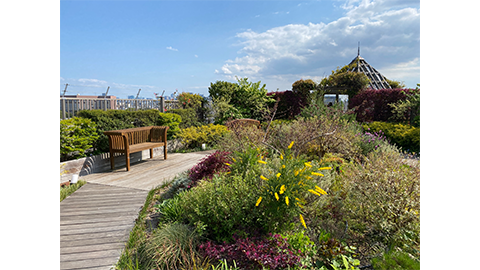 タイトル横の写真は、成瀬記念講堂です。曇りの昼間という状況が、城の雰囲気を醸し出しています。左にある写真は、七十年館と香雪館の間にあるベンチです。とても趣があります。右にある写真は、百年館低層棟の屋上庭園「泉フロートガーデン」の一角です。ここが創立120年を迎えた歴史ある大学だということに気づかないかもしれません。メモリアルイヤーに建物が建設される日本女子大学ならではの場所だと思います。