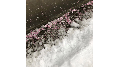 私は南方出身なので、こんなに雪が降り積もっているのは初めて見た。桜の花びらと雪が一緒に落ちる景色も、初めて見た。すごく綺麗だった。