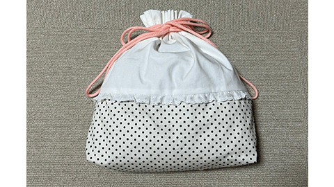 私は実際に裁縫を始めようとしたところ、わからないことがたくさんあり、祖母に手伝ってもらいながらのスタートでした。私の祖母はミシンのお仕事をしていました。よく、白衣やエプロンなど様々なものを縫っていたので裁縫は得意でした。私が初めて作ったのは巾着です。上下の布を変えていることと、レースをつけたことがポイントです。一枚の布から作ることはとても大変でした。特に、初めの型紙作りは何度やっても上手くいかず心が折れそうになりました。しかし、なんとか祖母の力を借り完成しました。ずっと絵であったものが、手元にあることの感動は忘れられません。また、様々なことに苦戦しながら作ったこの巾着は誰かにもらったり、買ったりしては感じられない温かさがあります。