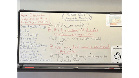 I am taking English conversation classes offered from the university this semester. I did not like studying English before, but I wanted to become able to use English. Thanks to these classes, I like English and I want to learn more. Before taking the classes, my purpose for studying English was just to improve the TOEIC score, so I did not like studying it. I also did not understand why I needed to study English. However, I like the English conversation classes because each lesson is only 40 minutes, they happen every day, and I can take them between my classes. I can also change the lesson time according to my schedule, so it is very convenient for me. The classes are not for credits, so I can practice English by playing games or talking about what we like. Before taking the classes, I thought that English was hard, but now I enjoy learning it. Now, I want to improve my English skills more so that I can enjoy radio programs, podcasts, and movies in English. In the future, I want to become a better English user so that I can communicate with people in the world.