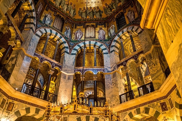 Am ersten Platz ist der Dom von Aachen, Deutschland. Die Kathedrale ist weithin bekannt für die Krönungszeremonien des Heiligen Römischen Kaisers. Besonders gerne würde ich den Stuhl Karls des Großen im Inneren der Kathedrale sehen. Ausgehend von diesem einfachen Stuhl ohne Dekoration würde ich gerne über den Hintergrund Karl des Großen nachdenken, der auf die Germanen zurückgeht.