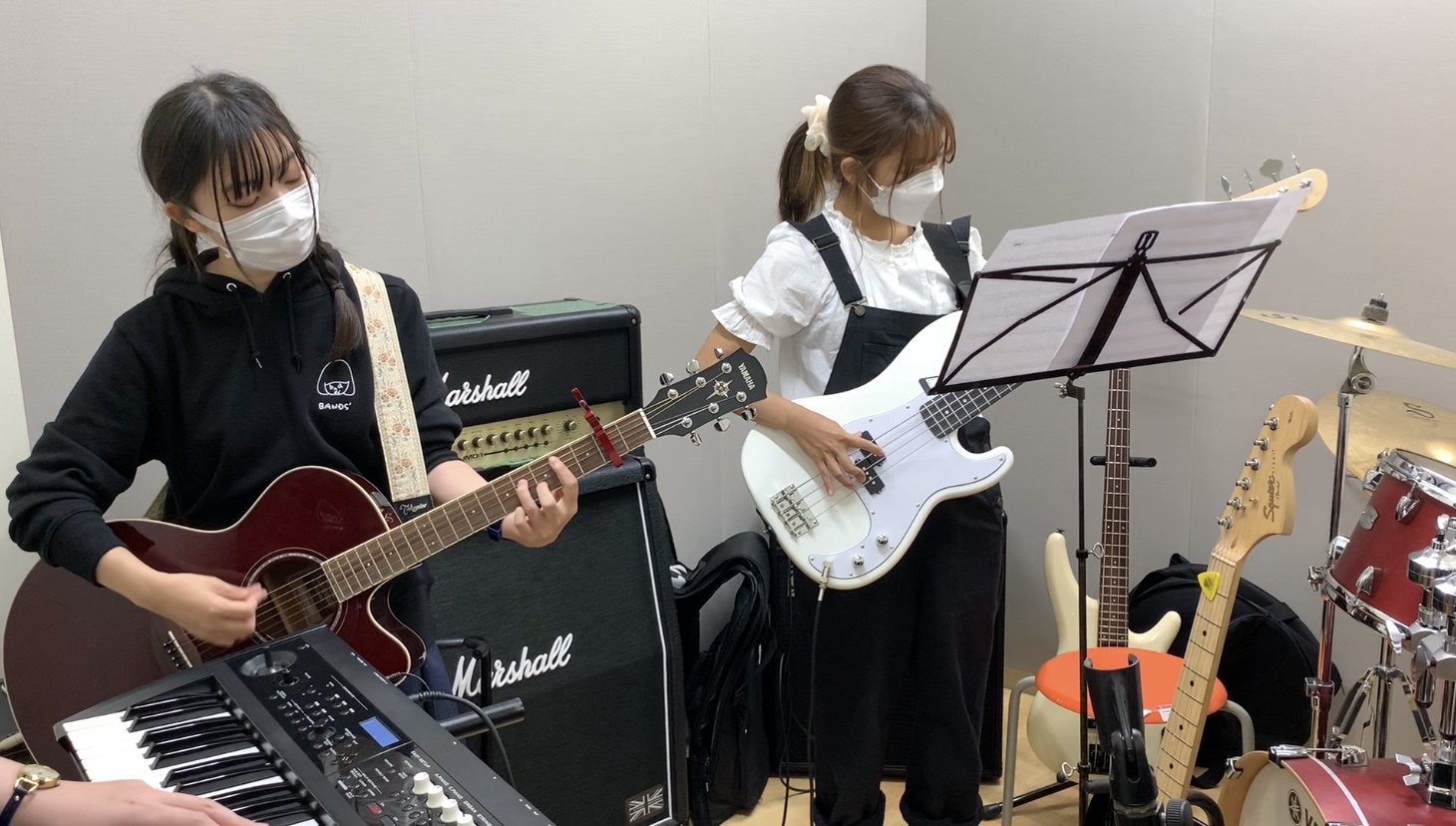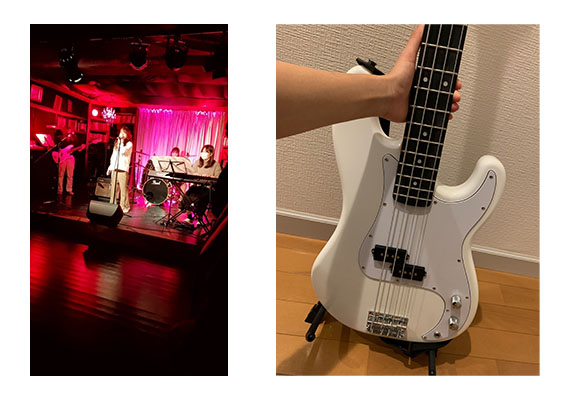 次に、コロナ禍でのサークル活動の内容を紹介します。私が所属するサークルは初心者でも入る事ができ、先輩方はみんなとても優しいです。本当はライブハウスでライブをしたり、大学の文化祭にも参加したりする予定でしたが緊急事態宣言のせいで、ライブは延期に、文化祭は動画を撮って大学へ提出するだけになってしまいました。ライブに向けて少ない回数ですがメンバーと集まって練習をしています。あまり集まる事ができないため個人練習を家でするしかありません。私自身、バンドのライブに実際に行った事があり、生のライブでの演奏はアーティストと観客ですごく盛り上がる大事なイベントなため、早くコロナが収束してたくさんのお客さんの前でパフォーマンスをできるようになることを心待ちにしています。