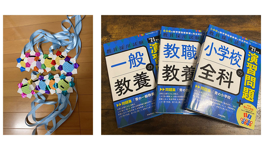 右:教員採用試験対策に使っていた参考書