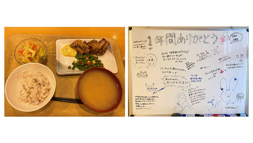 最初は知り合いが誰もいない状態で入寮したため不安と期待が入り混じっていました。そんな中私たちは広島焼きパーティーを行いました。私たちの寮では朝と晩のI日2回食事が出ます。ですが休日はご飯の提供がありません。また寮には日本全国さまざまな地域出身の友達がいます。私の生活している階には広島出身の友達がいたためみんなで広島焼きを作ろう!ということになりました。スーパーへ材料を買いに行き、野菜を切って、麺を炒めて、ひっくり返して…と美味しい広島焼きが完成しました。ここで一つ学んだことですが、焼きそば麺よりもうどんを使うことをお勧めします。もちもちしておいしいです。ぜひ試してみてください!みんなで一緒に作って食べるのはとても楽しいし美味しいのですが、現在コロナの影響で人と食事を取ることができません。早くコロナが治まってみんなで楽しいパーティーを開きたいな、と思います。