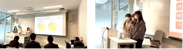 「JWU社会連携科目を初めて履修しましたが、とても勉強になりました。企業の方と話せる機会はなかなかないため、貴重な体験でした。今後も大学と企業が連携し、このような授業を企画していただけると嬉しいです」