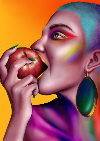 りんごは知恵を表していて、カラフルな色遣いはレインボーフラッグの元祖 8 色を用いて、多様な生き方を表現しました。