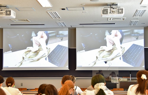 授業科目としては『民族服飾論』ですが、今回はアイヌ文化全体についてご講義いただきました。文化を知ったうえで、その土地の服飾について考えることの大切さを学んでもらうためです。