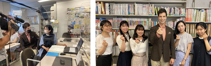 ・数分の放送のために、膨大な時間を費やして取材を重ね、番組を作り上げていくのだということに驚きました。また、パックンさんがカジュアルに質問してくださったので、緊張しつつも楽しんで取材を受けることが出来ました。(現代社会学科3年 谷口瑞紀さん)