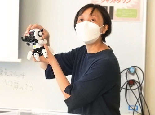 前半は、小川賀代先生より、プログラミングとは何かの説明がありました。さまざまなコンピュータ言語の紹介のほか、プログラミングの3つのプロセスである「順次処理」「条件分岐」「繰り返し」を学びました。この仕組みにより、「LEDを点灯させる」「LEDをずっと点灯させる」など、条件や動作を具体的に指定することができました。