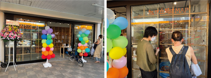 (写真右)正面ウィンドウの周辺マップに地域の方のおすすめスポットを書き込む