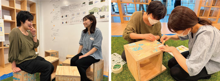 今日のイベントは正式オープンという区切りの位置付けです。これまで足を運んでくださる方は高齢者の方が多かったので、どの世代でも楽しんでいただけるペイントワークショップという内容にしました。また、ここで使う椅子に自らペイントすることで、自分が関わったモノがある場所として「ぷらっとあさひ」に愛着を持ってもらえたらいいなと思って企画しました。
