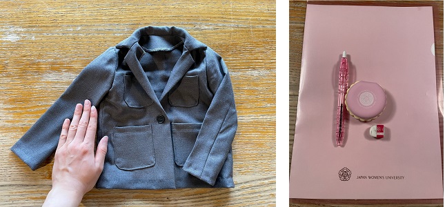 おもに被服について学んでいます。特に印象に残っている授業は、「衣造形実習Ⅰ」でジャケットを作ったことです。本当はスクーリング(対面授業)の予定でしたが、コロナ禍の影響でオンラインの授業になってしまいました。先生が実演する動画を見ながら真似して作るので大変でしたが、洋服の作られ方がよく分かりました。本来は自分のサイズで洋服を作るはずでしたが、オンライン授業のため製作サイズが2分の1サイズになり、すごく上手にできたのに人形の洋服になってしまいました……。悲しい感じもしましたが、それはそれでかわいくて達成感がありました。