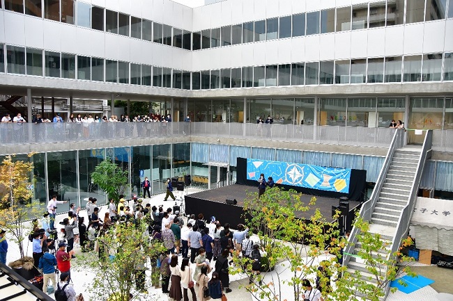百二十年館のパティオに設置された特設ステージで開催。大勢の人が集まり、初日一番の盛り上がりを見せていました。