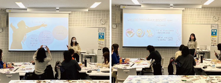 最終回では集大成として、スライドなどを使いながら全員の前で1人ずつプレゼンテーションをしました。テーマは自由で、受講生は自身の専門分野、英語の学習法、将来の計画などを発表しました。内容の組み立てから、伝え方にも気を配りました。仲間からもらえたフィードバックはとても貴重でした。最後に各自が今後のアクションプランを決め、温かい雰囲気の中で、講座が終了しました。