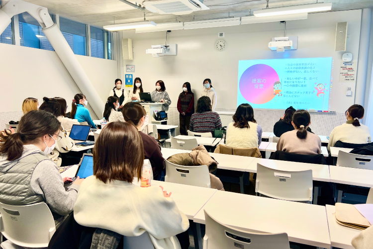 2月16日(木)、学生にSDGsをより自分事として捉えてもらうことを目的とし、社会連携教育センター主催のイベント「JAL社員と考えるSDGs」が開催されました。会場のJWU ラーニングコモンズ・かえでには、春期休暇中にも関わらず幅広い学科、学年から40名近い学生が集まりました。