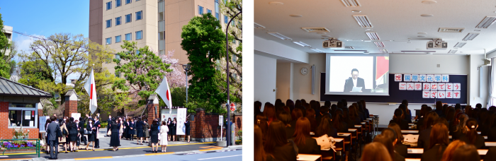 2023年4月3日(月)、成瀬記念講堂にて日本女子大学入学式・日本女子大学大学院入学式を挙行しました。午前の部、午後の部と2部に分けての開催でした。