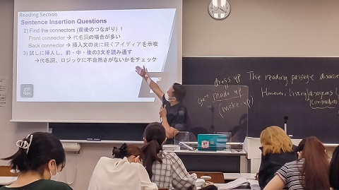 さらに、英文エッセイには決まった型があるのですが、それを知らず点数が取れない学生が多いので、その型やフォーマット上の留意点を学べるように、日本では数少ないETS公認トレーナーの講義を組み込んでいることも特筆に値する特徴です。