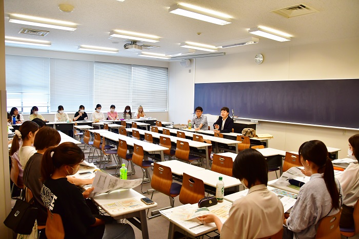 6月27日(火)、人間社会学部社会福祉学科の2年次からの選択科目「社会保障原論」内で、厚生労働省年金局の職員を招いて「年金対話集会」を行いました。本学では、昨年に引き続き2回目の実施となります。