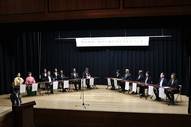今回、日本女子大学と協定を締結することにより、様々な形で大学生がこの町を訪れ、合宿や研究に取り組んでいただくなかで、町内の子どもたちが大学生を身近に感じ、学ぶことの意義や目的、楽しさに気づいてくれることで、自分の未来を切り開いていくきっかけになることを願っています」とお言葉をいただきました。