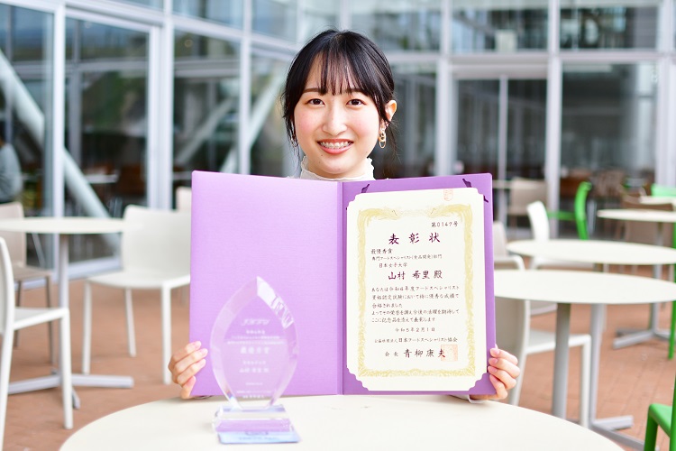 2022年12月18日(日)に実施された「令和4年度フードスペシャリスト資格認定試験 専門フードスペシャリスト(食品開発)」において、食物学科食物学専攻の山村希里さん(当時3年)が、最高得点の学生…