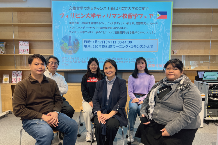 1月12日(木)、今春学術交流に関する大学間協定を締結し、交換留学生の往来が始まる予定のフィリピン大学ディリマン校(UP)のプレ留学フェアを開催しました。今回のイベントには、協定締結実現の立役者で…