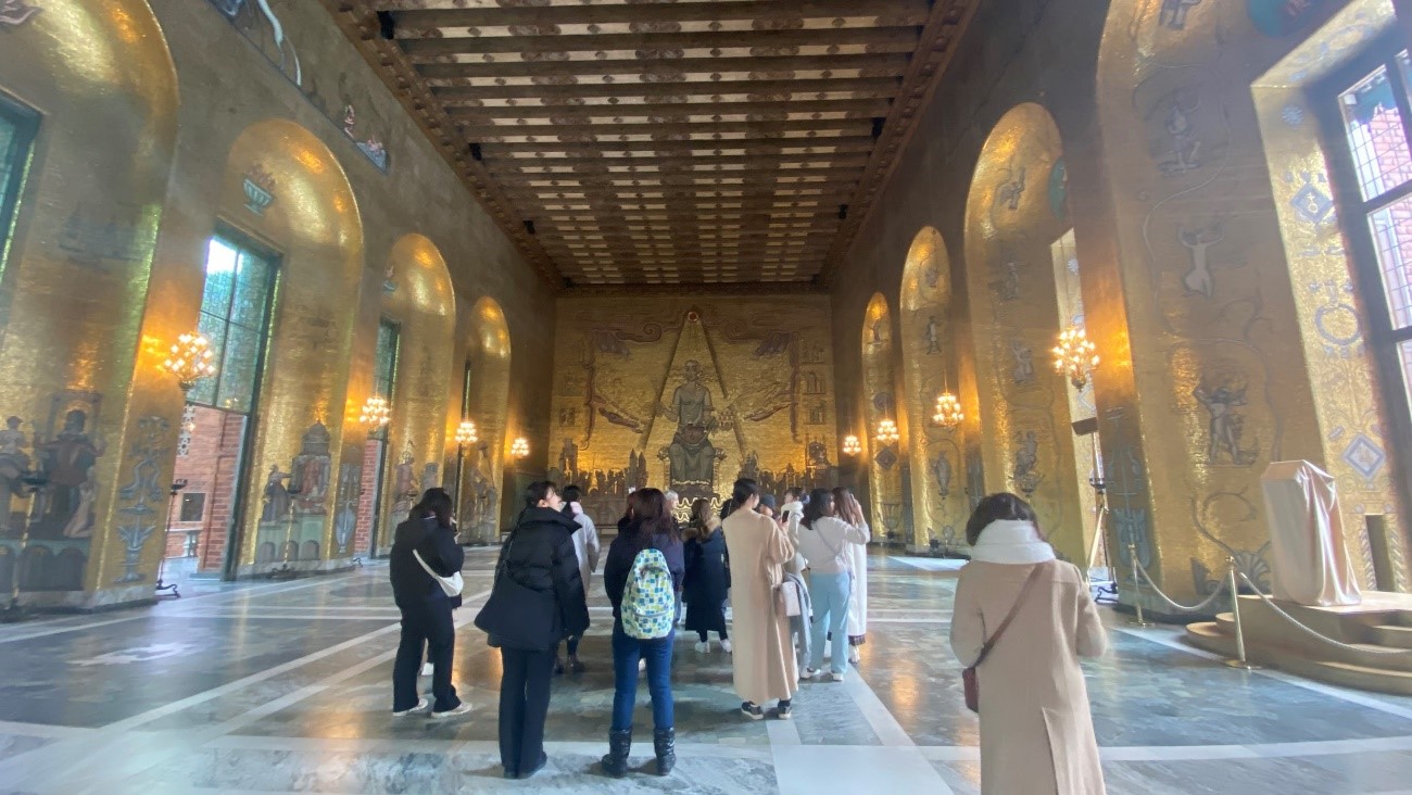 ストックホルムでは、観光が中心で世界遺産の森の墓地、建築が有名な市立図書館、ノーベル賞の晩餐会が行われるストックホルム市庁舎、「魔女の宅急便」の舞台ガムラスタンなど数多くの観光名所をガイドの方と一緒に回りました。ただ観光するのではなく、ガイドさんが説明してくださるため、勉強にもなりました。